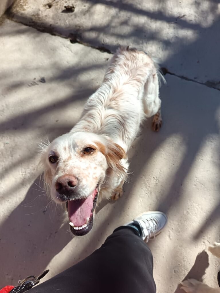 Soy Tiny, la setter inglés más pequeña del barrio… y probablemente la más convencida de que soy una diva. Mi tamaño es reducido, sí, pero mi personalidad ocupa como tres sofás enteros. Camino con mis orejas largas moviéndose al viento como si estuviera grabando un anuncio de champú canino, y mi cola funciona como un ventilador emocional: cuanto más feliz estoy, más peligro hay de que algo salga volando.